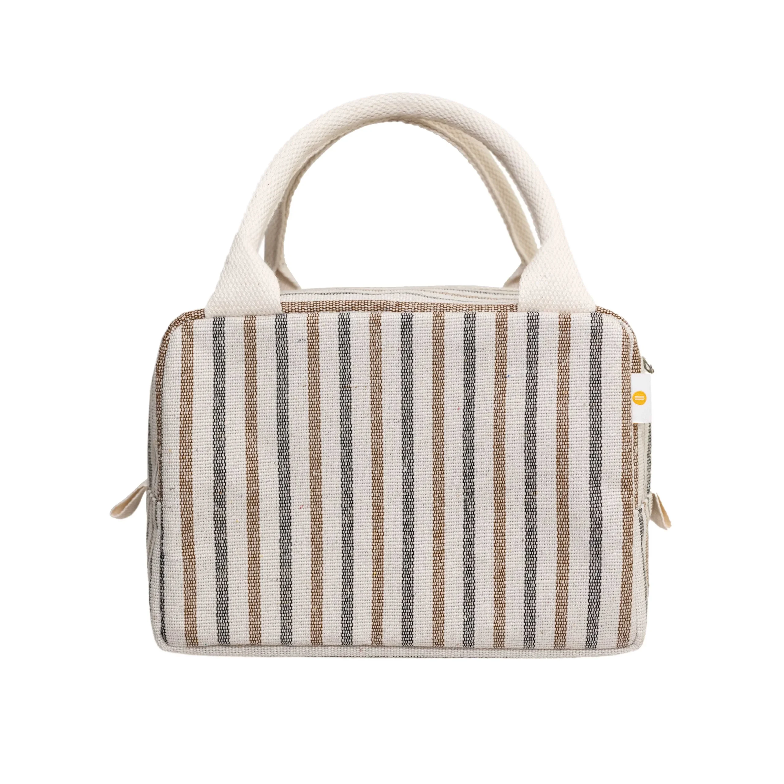 The Juco Lunch Tote uses the laminated juco body paired with a cotton web handle for durablility. An aluminum-lined interior helps maintain food temperature and adds an easy-to-clean, insulated layer, making it a practical choice for carrying meals and snacks to work, school, or outings.