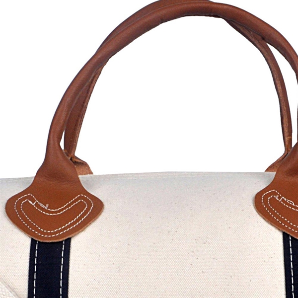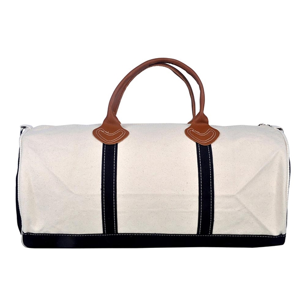Leather handles and adjustable straps feel premium, not cheap. Heavy-duty 18 oz canvas laughs at scuffs, with silkscreen or embroidery ready for logos. At 21.25″W x 10.5″H x 10.5″D, it swallows weekend loads. Compare to signature duffle for classic vibes or Round duffle solid bags for plain colors. Round leather duffle bag touches elevate it over basic gym sacks. Stitchmaninc builds these for real use in travel bags.