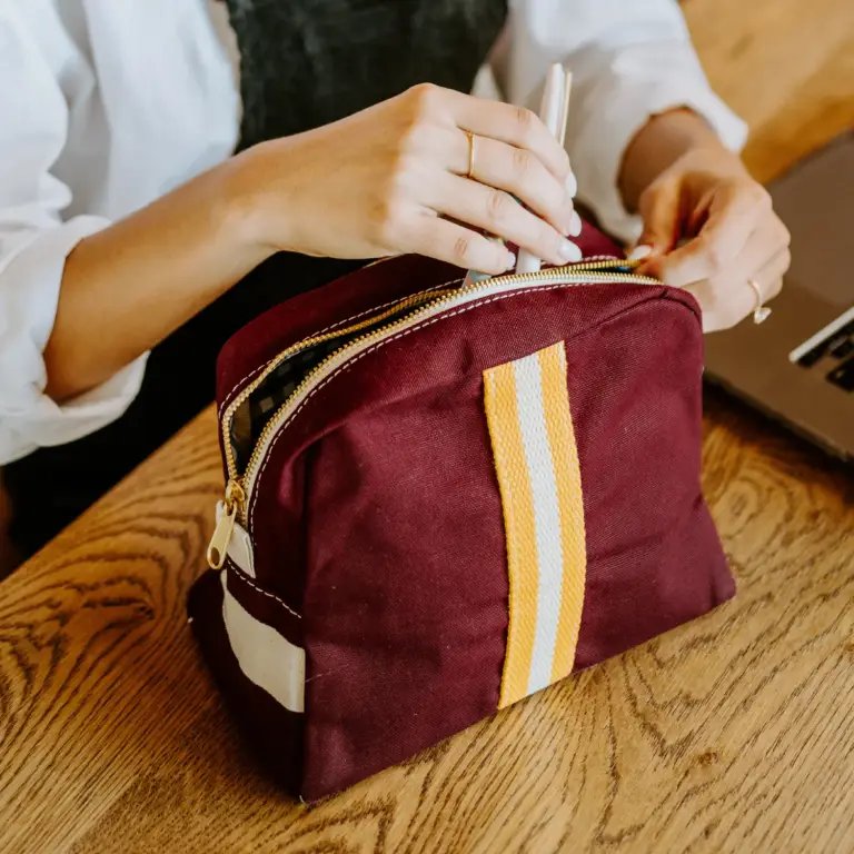 Take your brand to new heights with this stylish travel kit! Perfect for weekend getaways or cross-country trips, this 10 oz. lightweight canvas bag is designed to hold all your essential toiletries. It features a charming Gingham lining and a secure zipper closure for added convenience. Customize it with your company logo or message through embroidery or silkscreening to create a promotional item that’s sure to delight any traveler.